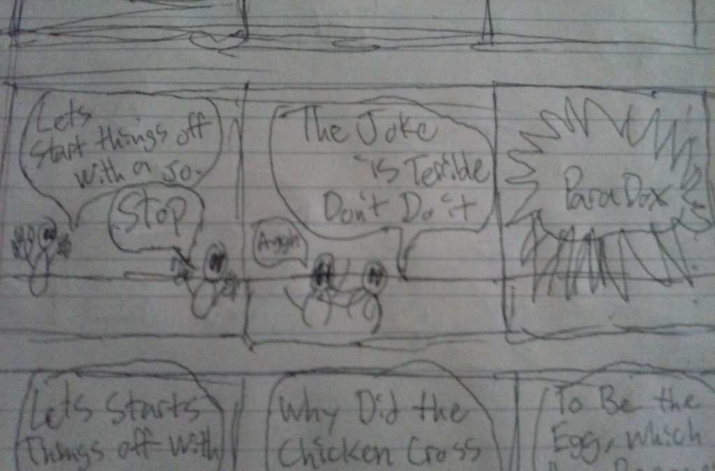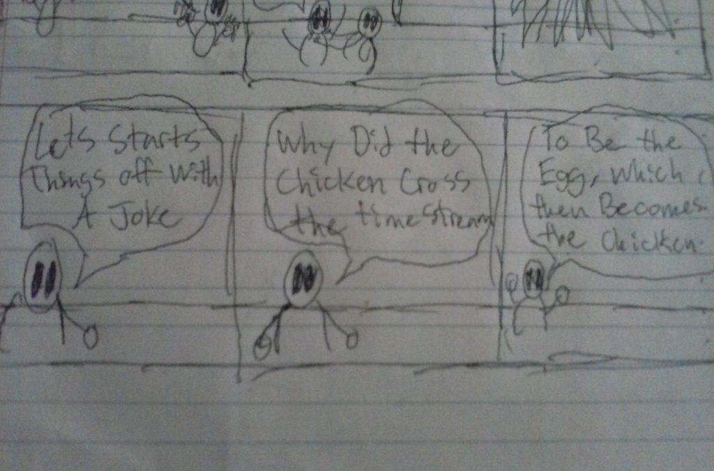 Be Sure to check out our hosts new Spotlight Sunday; http://www.opendoor-comics.com/blog/category/spotlight-sundays/ Panel 01 Host “Let’s Start off with a Joke” Panel 02 Host “Why did the Chicken cross the Time-stream?” Panel 03 Host “To become the Egg! Which hatches into[…]↓ Read the rest of this entry…